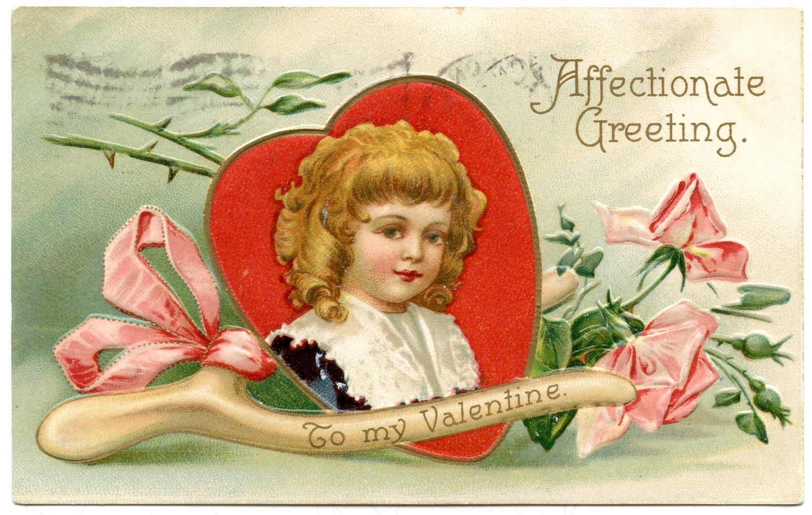 Title (ebay affiliate link): B5789 Affectionate Greeting To my Valentine Girl Heart Wishbone Roses Old PC Emb