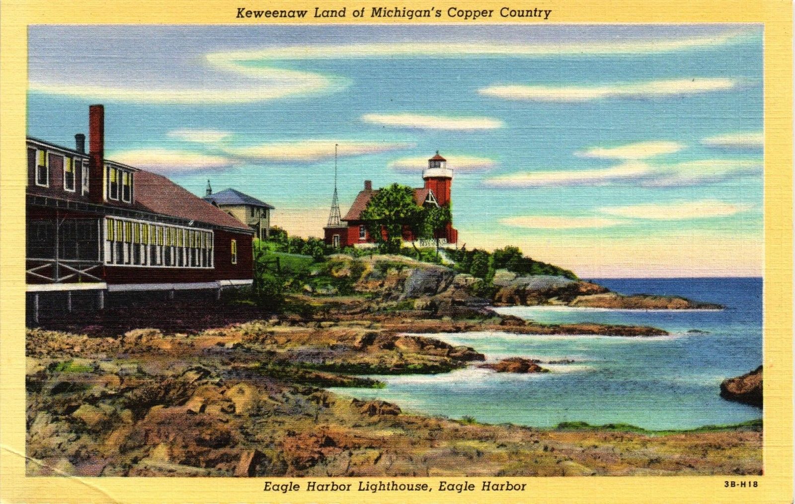 Title (ebay affiliate link): DR JIM STAMPS US KEWEENAW EAGLE HARBOR LIGHTHOUSE LINEN COLORTONE POSTCARD