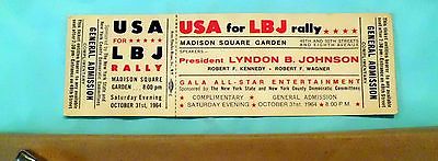 Title (ebay affiliate link): 1964 "USA for LBJ rally" at Madison Sq Garden ticket - NO RESERVE
