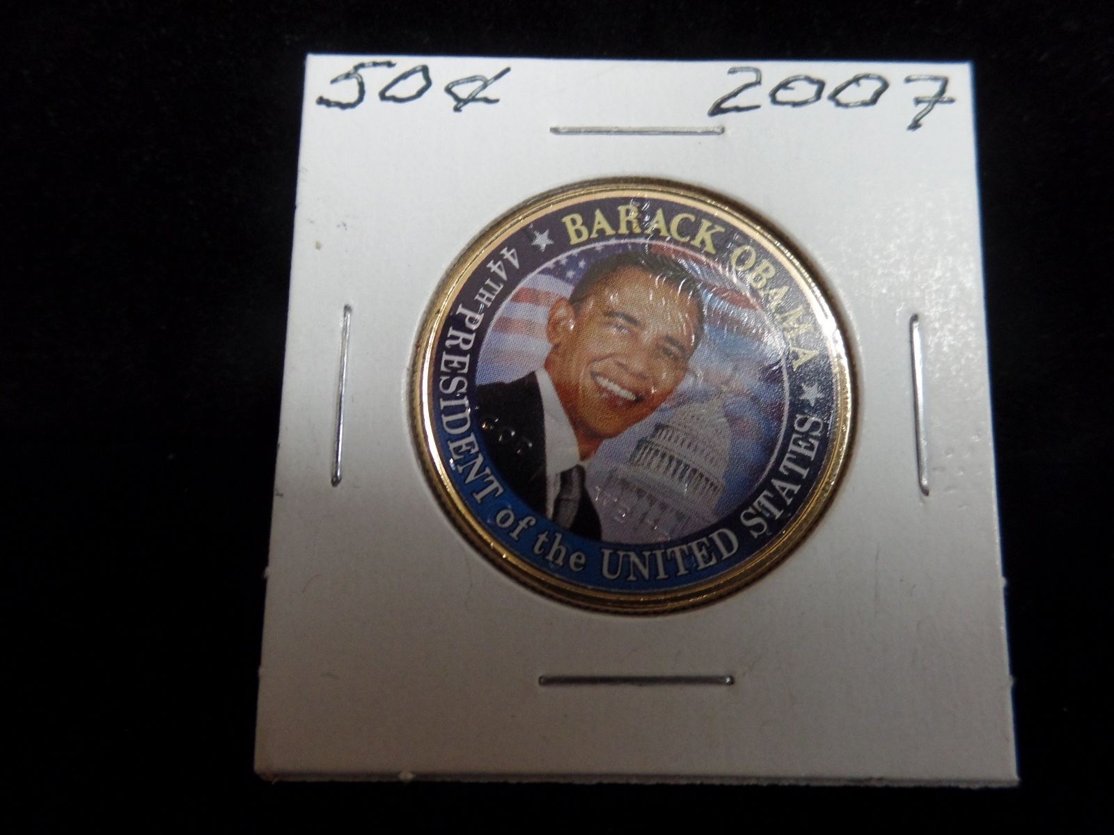 Title (ebay affiliate link): Barack Obama Colorized half dollar- image over Kennedy Half Dollar