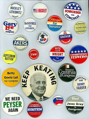 22 Vintage 1964 70s New York Political Pinback Buttons Buckley McConnell Keating