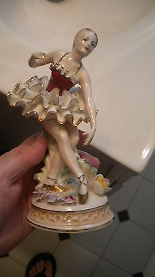 Vintage BONE CHINA LACE BALLERINA Figurine w/ 2 Swords Crossing Mark