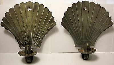 Pair Vintage Primitive Fan Art Deco Tin Wall Sconce Candle Candlestick Holder