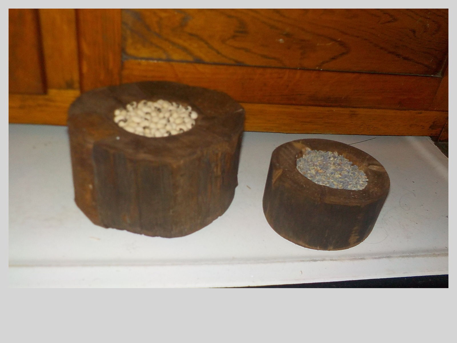 Title (ebay affiliate link): SET OF PRIMITIVE INSPIRED WOODEN HORN BEAMS W/ MAKE DO REPAIRS w/ LAVENDER& PEAS