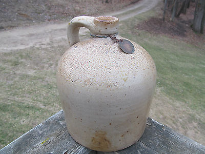 Title (ebay affiliate link): Unique Tan Speckled Rhubarb Copper tag stoneware Moonshine Jug gallon