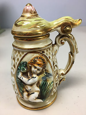 Title (ebay affiliate link): Capodimonte Small Lidded Stein Winged Cupids Cherubs Gold Gilt Porcelain