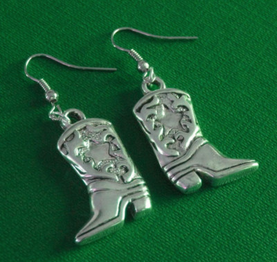 Title (ebay affiliate link): Kitsch Cowgirl Boot Earrings Antique Silver Tone NEW