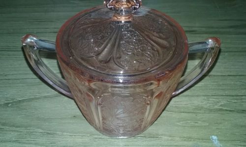 Pink Depression Glass Sugar Bowl with cover