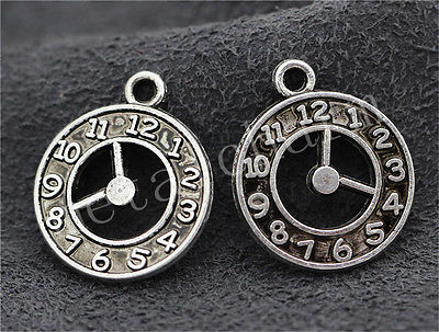 Title (ebay affiliate link): 20pcs Antique Silver Exquisite two-sided Clock Charms Pendant DIY 21x18mm