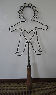 15.75" Primitive Girl Doll w Heart Rug Carpet Beater Wood Handle Rustic Folk Art