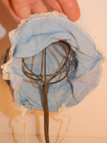 ANTIQUE OLD BLUE & LACE DOLL HAT BONNET GERMAN BISQUE COMPOSITION