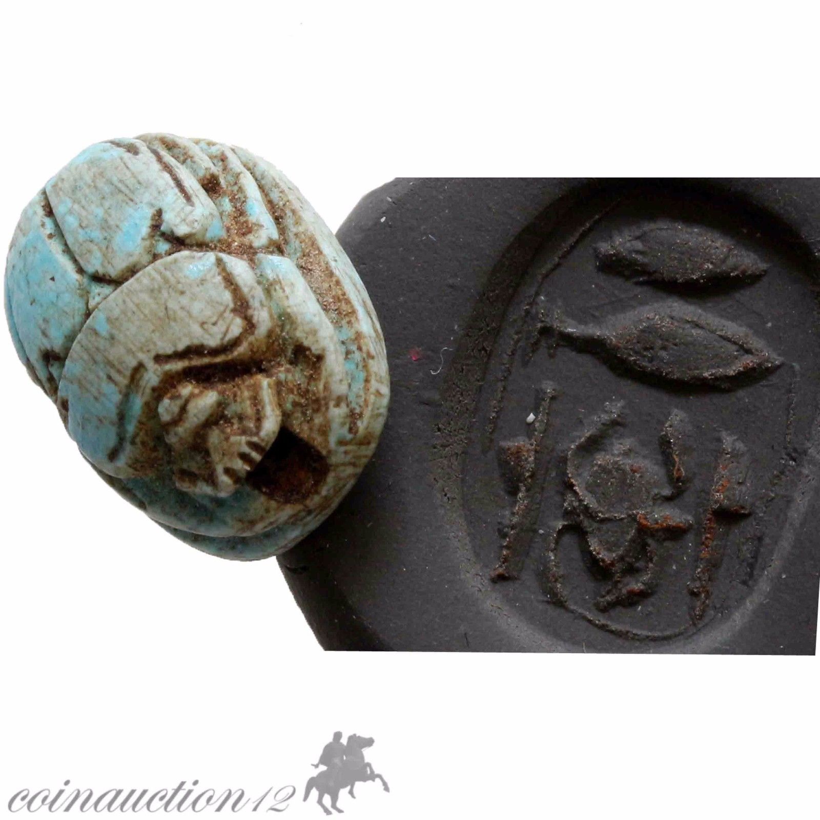 Title (ebay affiliate link): CIRCA 1500-1000 BC INTACT EGYPTIAN CARVED BLUE GLAZE SCARAB BEAD SEAL
