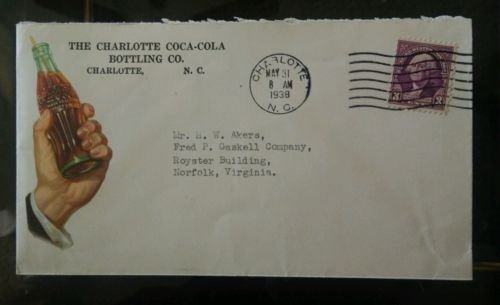 Title (ebay affiliate link): Vintage 1938 Coca Cola envelope w/stamp Charlotte ,NC