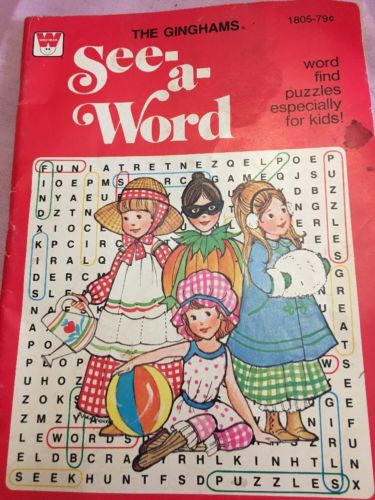 Title (ebay affiliate link): Vintage 1979 The Ginghams See-a-Word Puzzle Book - Used - Cute Pictures