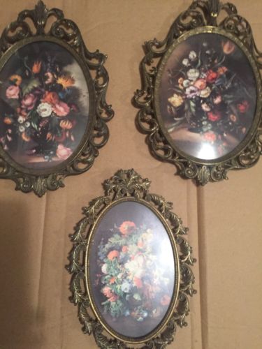 3 Italian Brass Vintage Frames With Famous Photo Prints