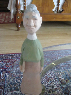 Folk Art Wood Hand Carved Old Lady Figure, Fred Hanson