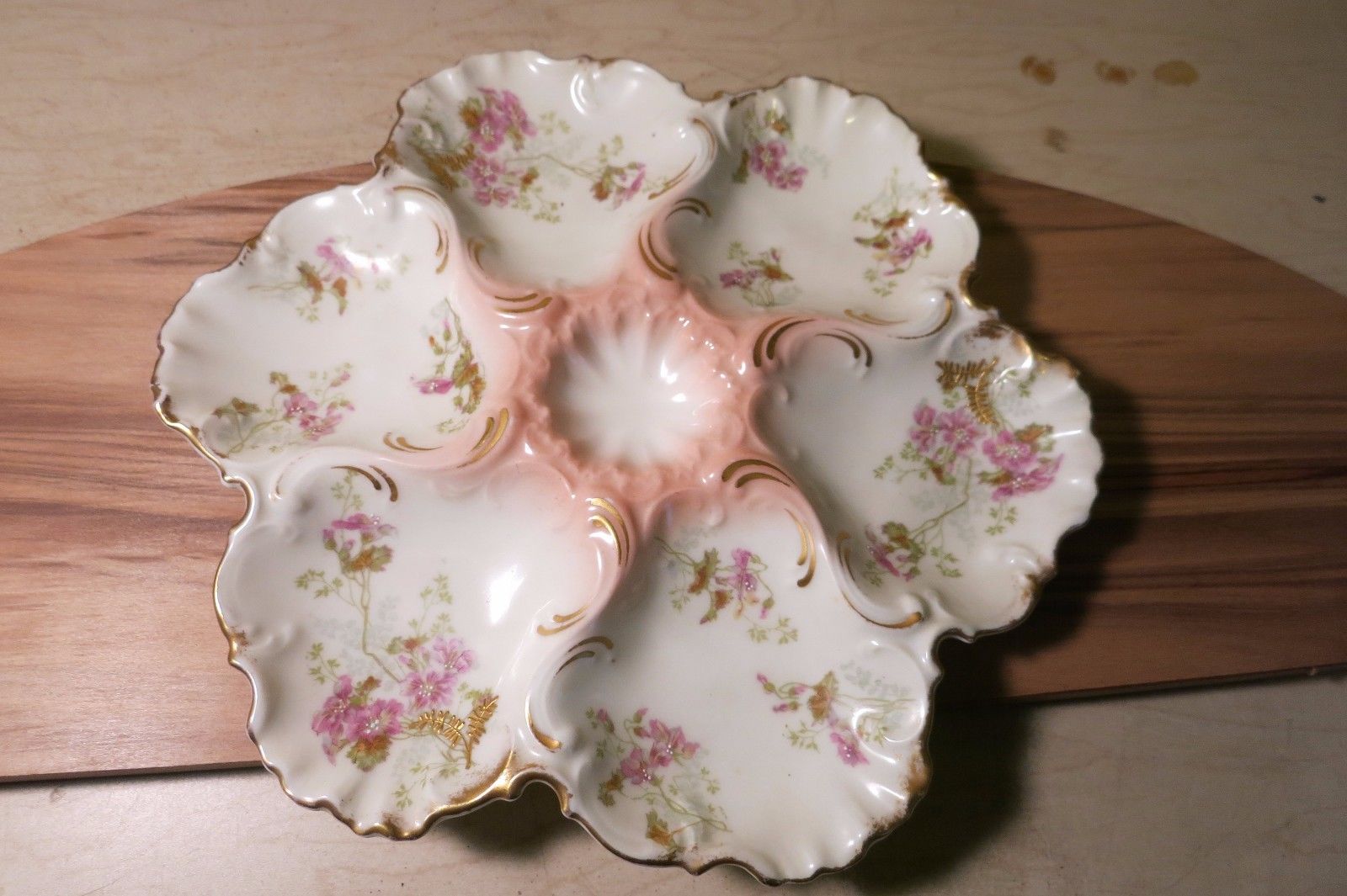 VINTAGE OYSTER PLATE LIMOGES FRANCE 10 INCH GREAT COLORS HAND PAINTED