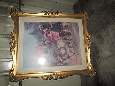 Large Ornate Picture Frame children & goat cart VINTAGE ANTIQUE