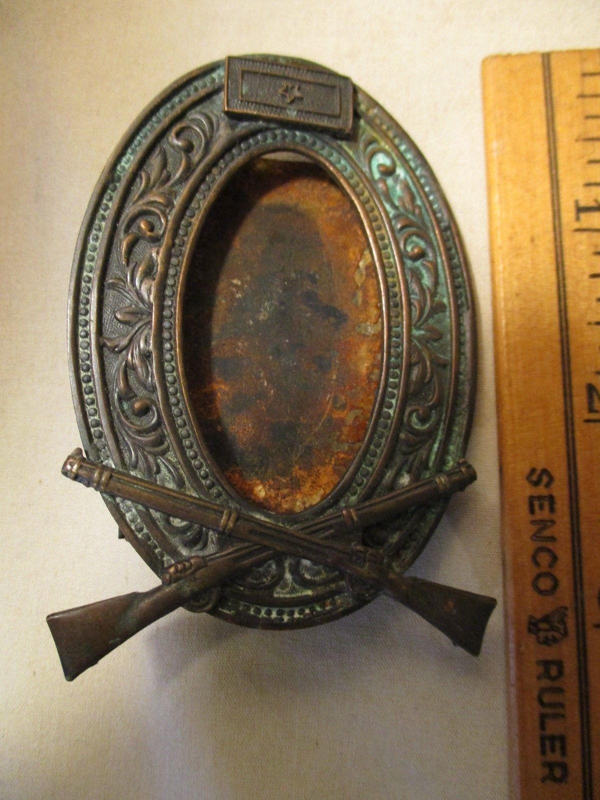 Vintage Oval Metal Picture Frame Military Crossed Guns