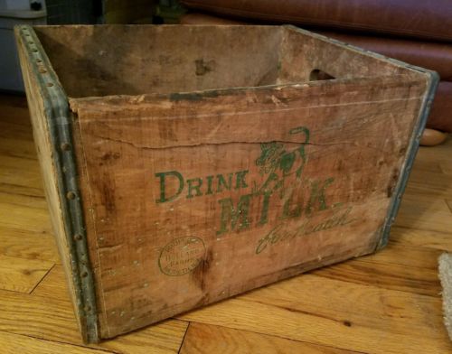 Title (ebay affiliate link): Vintage Dairy BOX Milk Bottle CRATE Wood Metal Trim HOLLAND FARM Rustic Antique