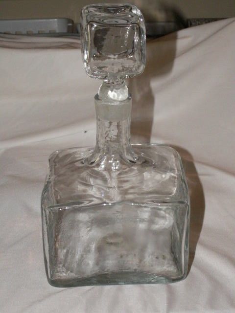 Glass Decanter...Hand Blown...Square...10"...Unmarked...Glass Stopper...