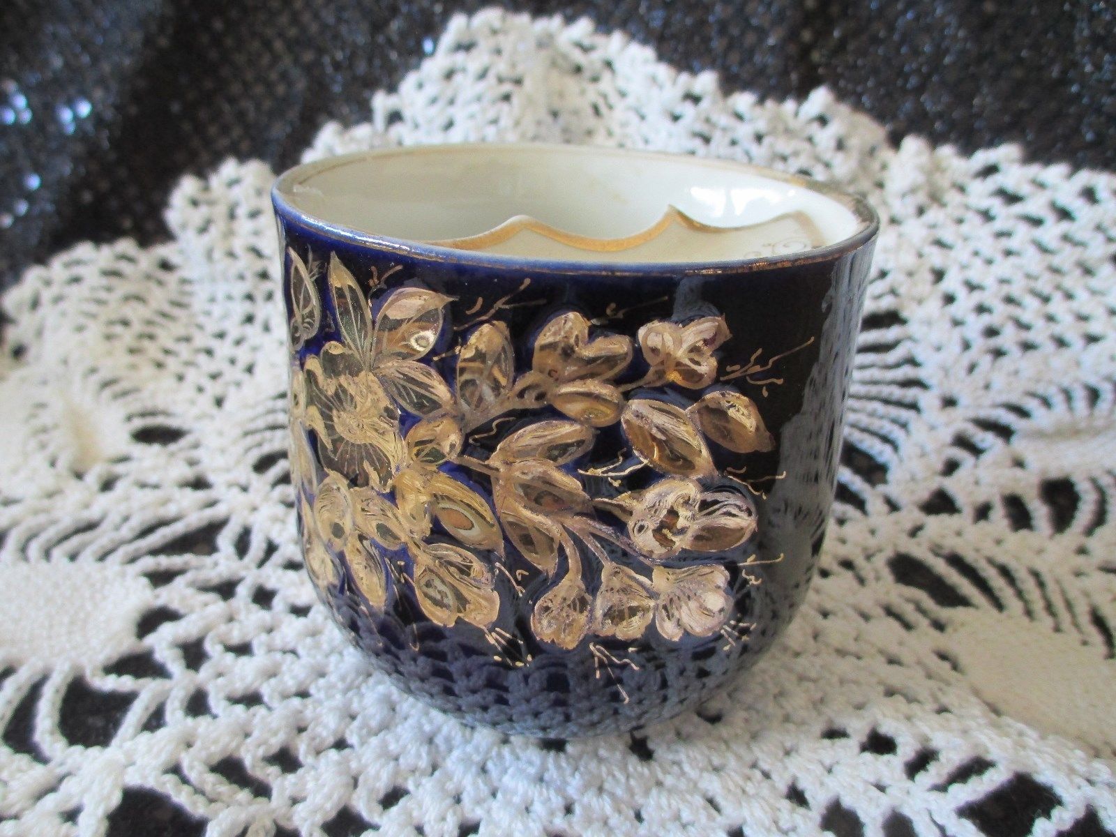 Title (ebay affiliate link): Vintage Cobolt Blue Floral Moustache Cup