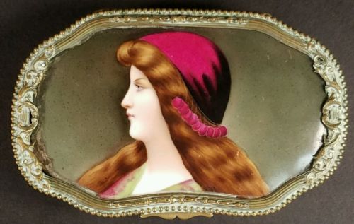 19th C. Hand Painted Porcelain Limoges and Brass Contoured Box