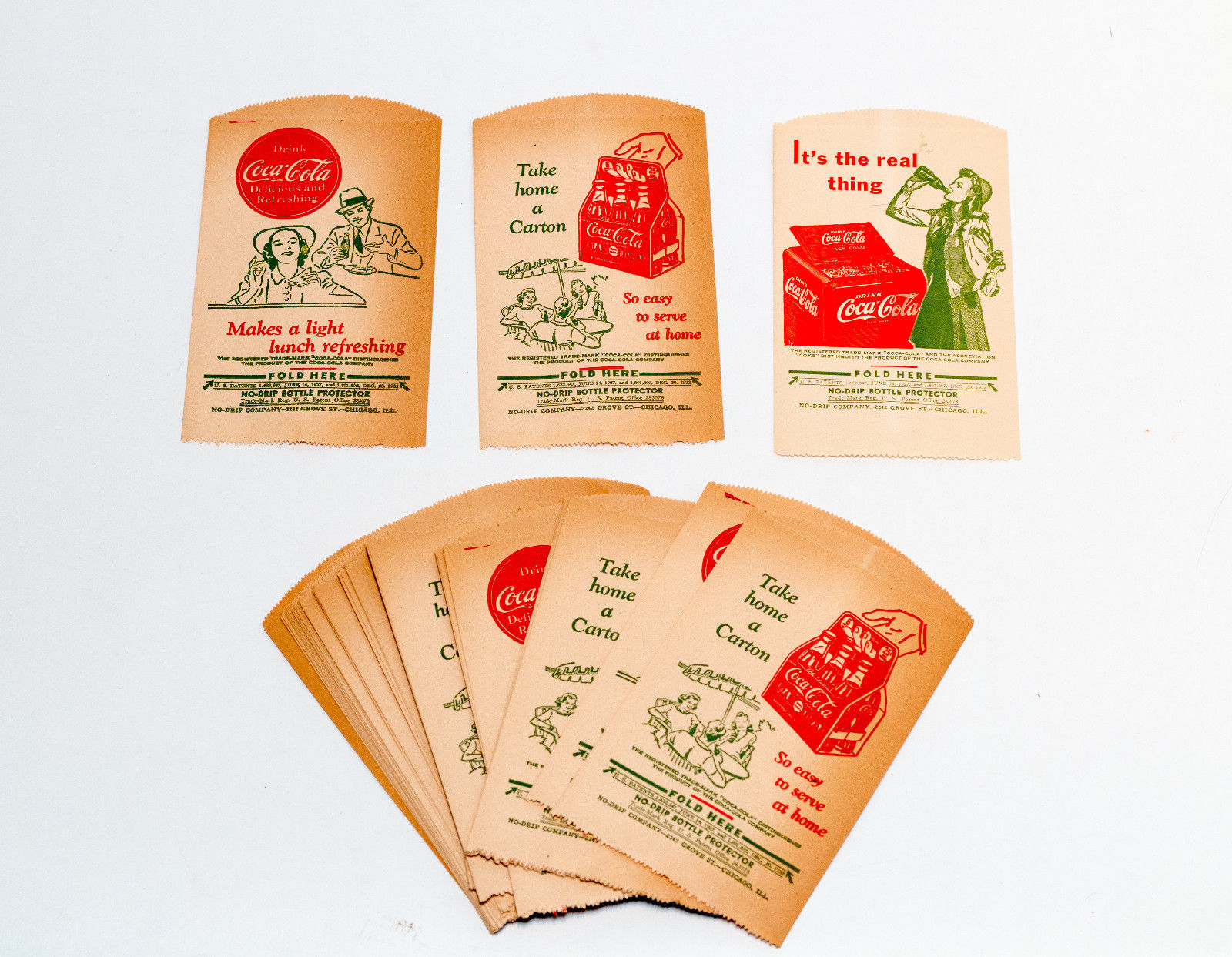 50+ Coca Cola No-Drip Bottle Protectors - 1933 - Various Illustrations