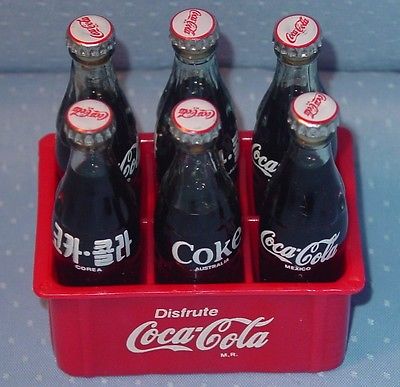 Title (ebay affiliate link): 6 PAK Mini Coke Bottles Old Promo Korea Australia Mx. Glass metal tops- 3 inches