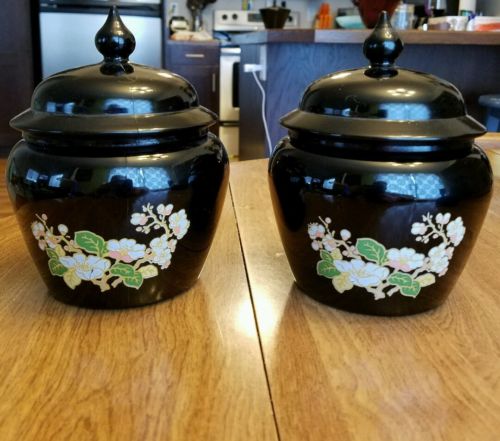 Title (ebay affiliate link): Avon Black Glass Vase Jar Floral Design Old and Vintage