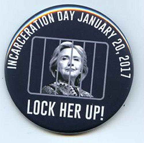 Title (ebay affiliate link): Hillary Clinton Incarceration Day Donald Trump button