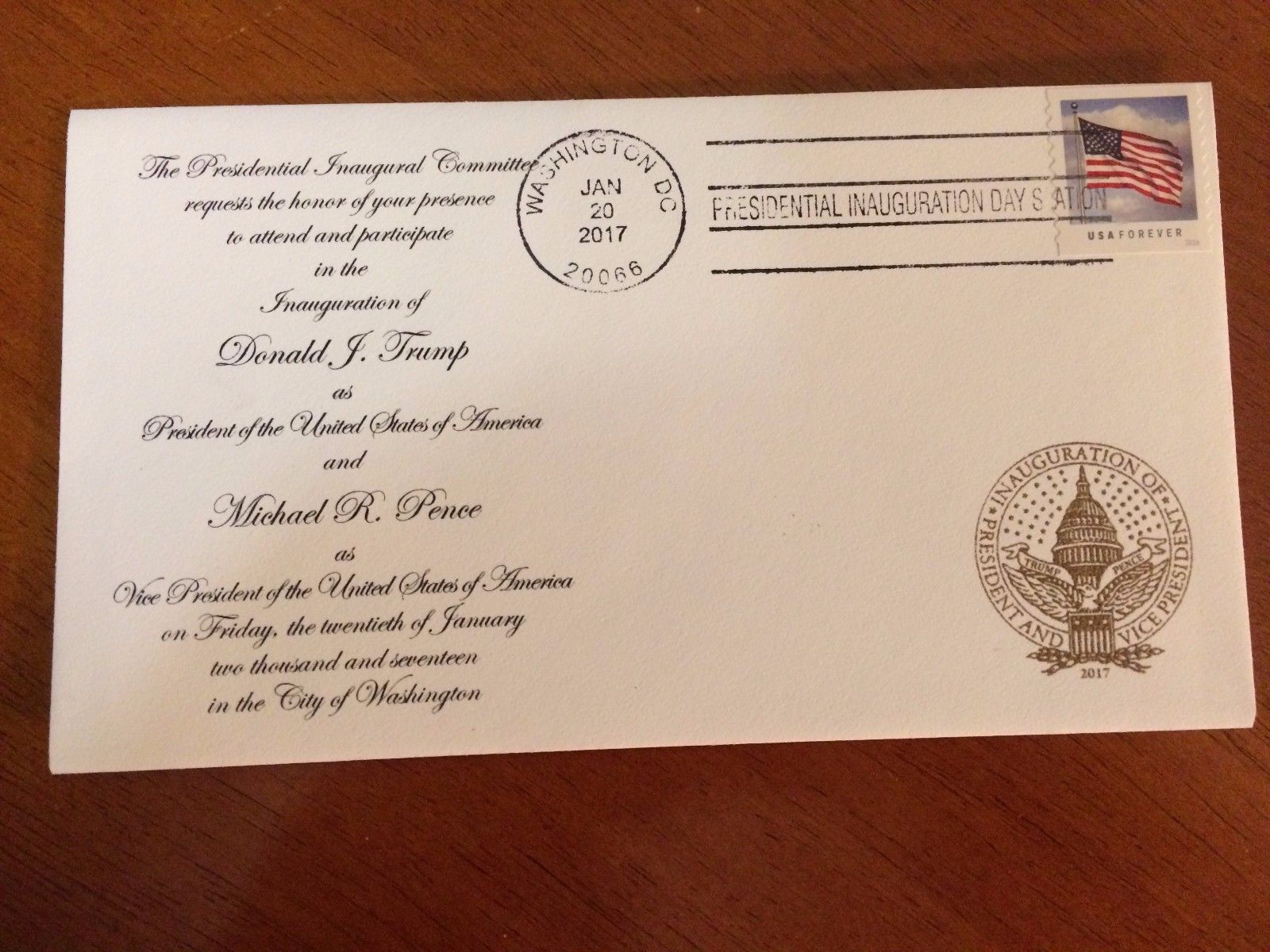 PRESIDENT D. TRUMP FDC Washington D.C. Inaugural Official Postmark 1/20/2017 #2