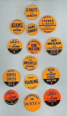 Title (ebay affiliate link): 14 Vintage 1970s New York Conservative Party Political Pinback Buttons D''AMato