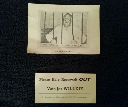 Title (ebay affiliate link): 1940 Franklin Roosevelt/Willkie Presidential Race 1940 Paper Political Hand Outs