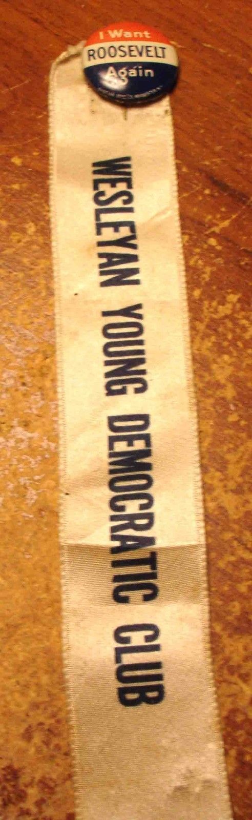 Title (ebay affiliate link): FDR Roosevelt Pin & Ribbon-Wesleyan Young Democratic Club-1930''s!