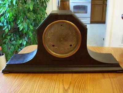 ANTIQUE NEW HAVEN MANTEL CLOCK OCTAGON MAHOGANY