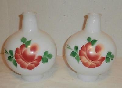 VINTAGE PAIR MILK GLASS LAMP SHADES WITH ROSES (VGC)