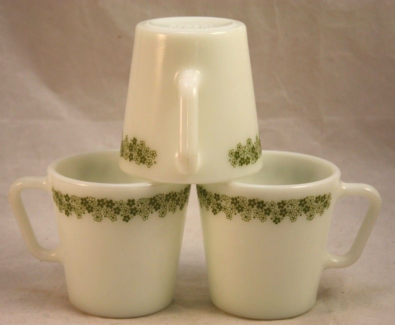 Title (ebay affiliate link): (3) Vintage PYREX 1410 Crazy Daisy Spring Garden Milk Glass Coffee Mugs Cups