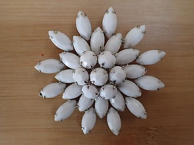 Milkglass Rhinestones Flower Pin/Brooch