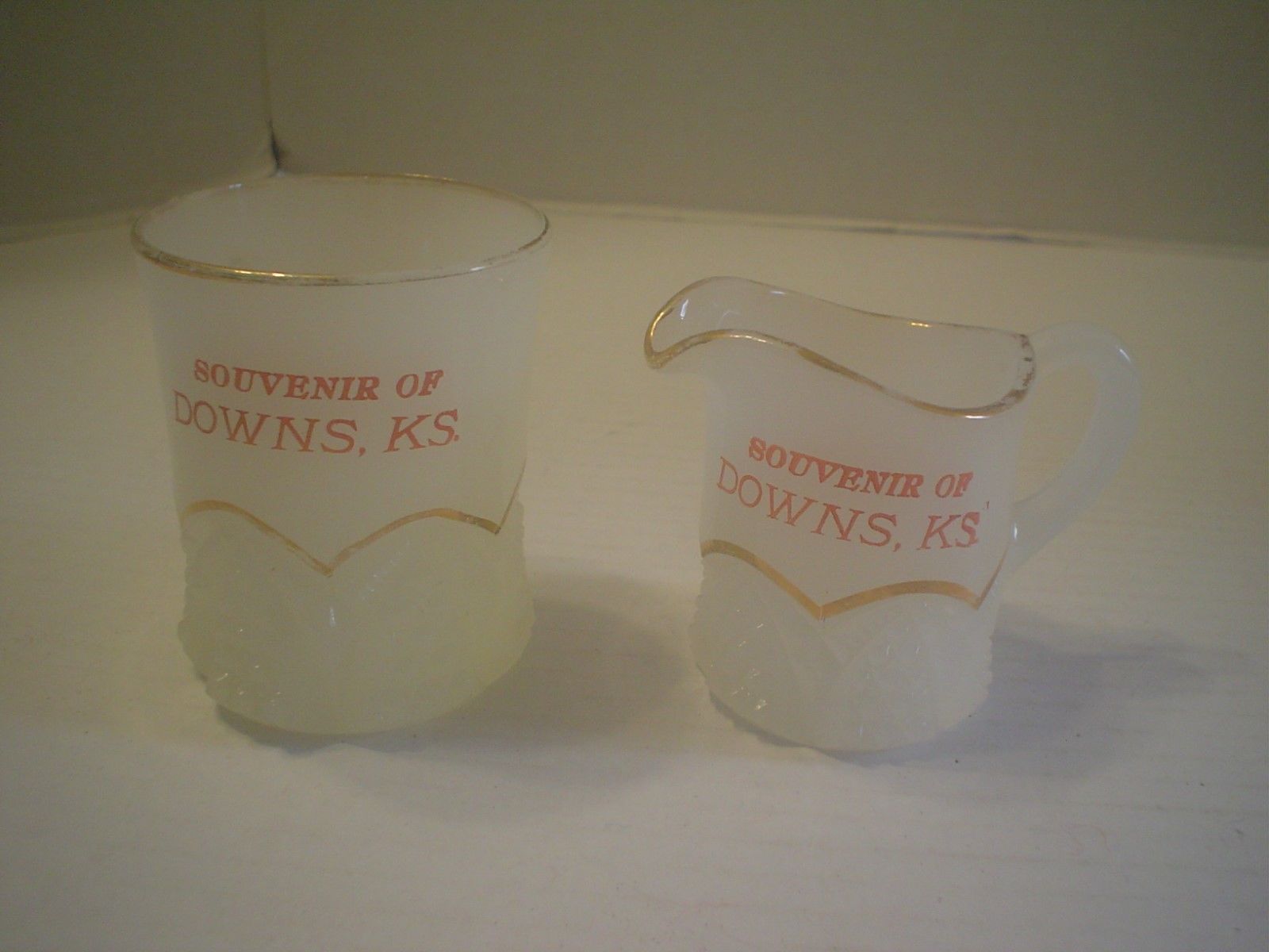 Title (ebay affiliate link): VINTAGE SOUVENIR OF DOWNS, KS, TOOTHPICK HOLDER, CREAMER, WHITE MILK GLASS