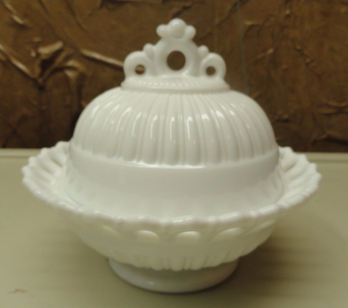 Vintage Milk Glass Round Covered Butter / Candy Dish