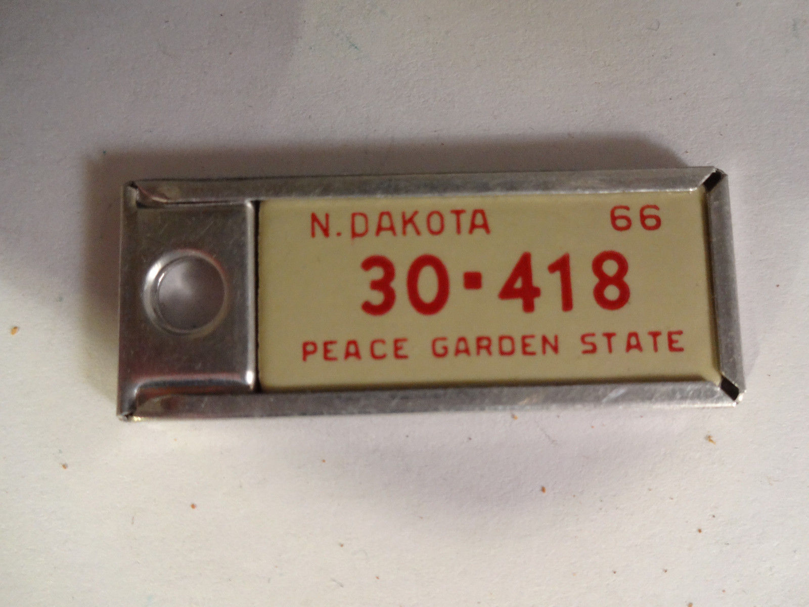 Title (ebay affiliate link): Nice Vintage 1966 North Dakota Miniature DAV License Plate Key Chain Tag