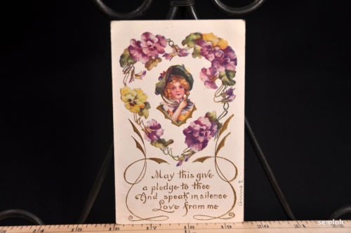 Title (ebay affiliate link): Vintage VALENTINE Embossed POSTCARD LOVE From Me Used Posted 1908 Pansies HEART