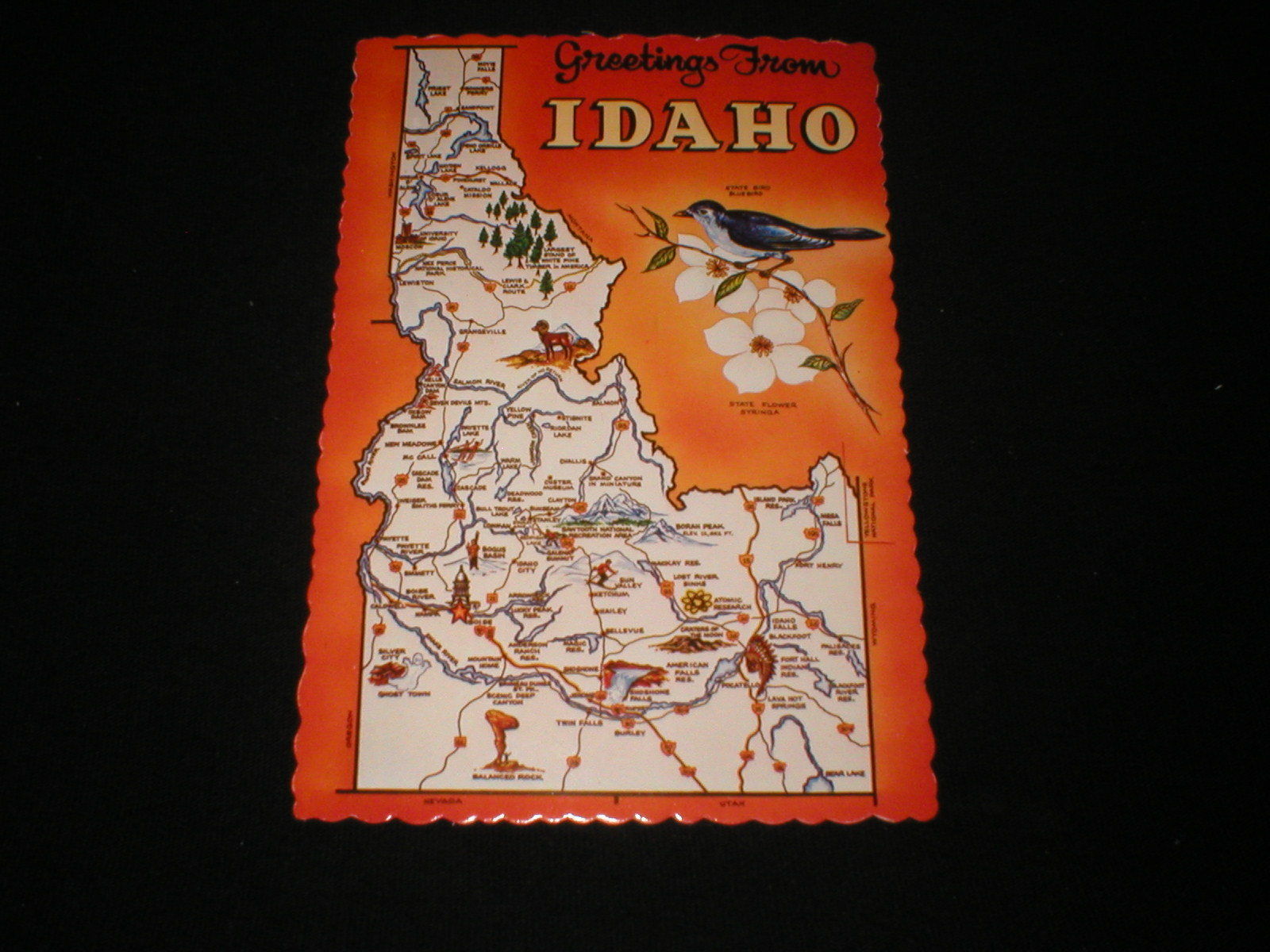 Title (ebay affiliate link): GREETINGS FROM IDAHO - The " Gem State " Road Map Art ~ Postcard