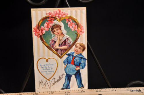 Title (ebay affiliate link): Vintage VALENTINE Embossed POSTCARD ACCEPT the HEART Posted 1915 Gold Heart