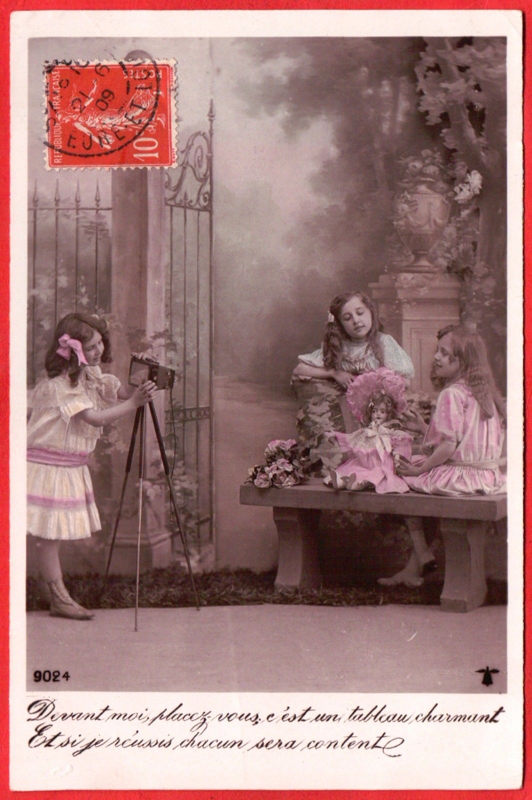 Children Pretty Girls Doll Camera Photo Machine 5 original old 1910s postcard
