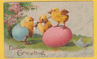Easter embossed postardc/ 3 chicks/ large egg/ broken egg/