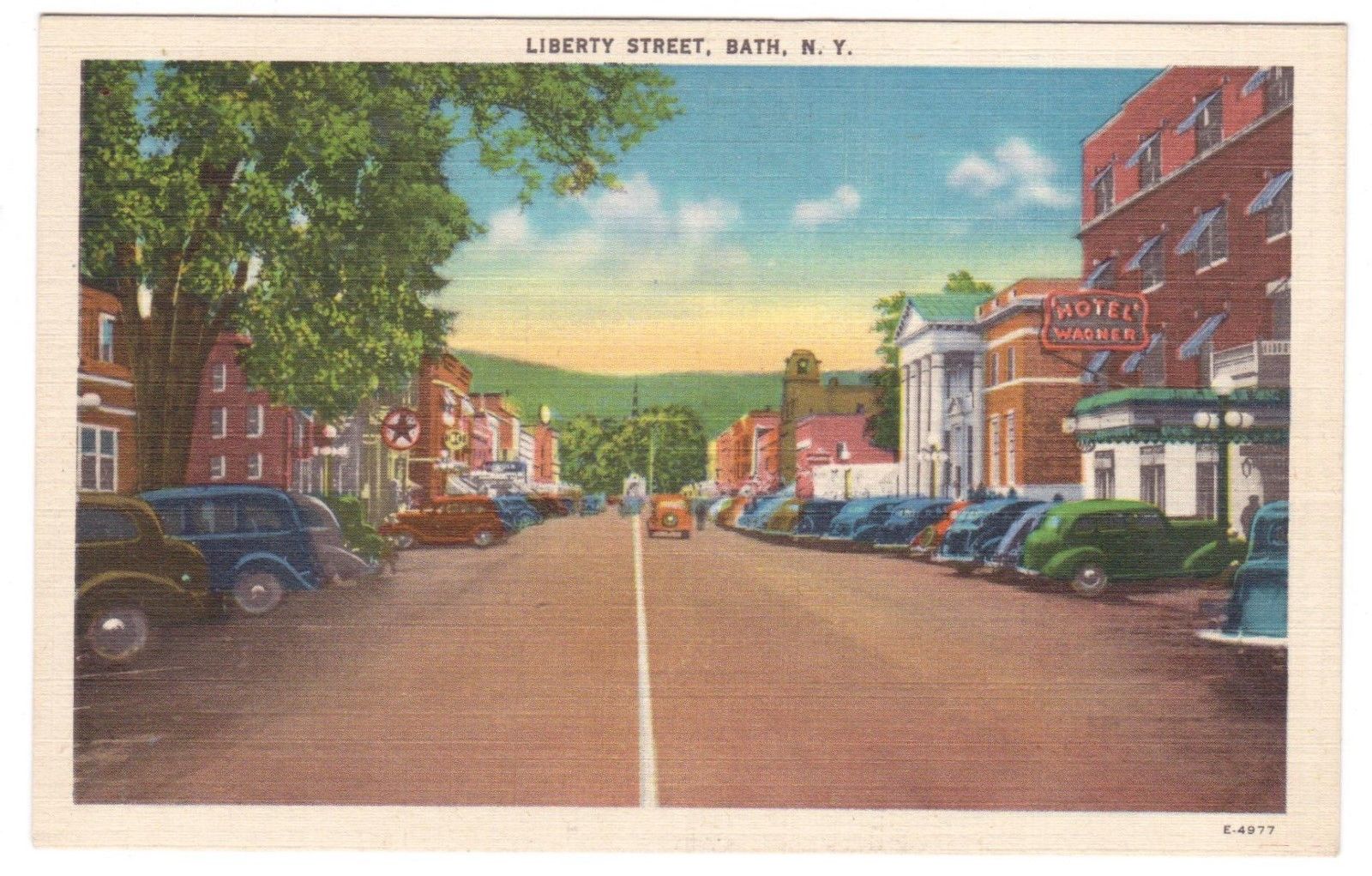 VINTAGE 1940''S VIEW DOWN LIBERTY STREET BATH NEW YORK HOTEL WAGNER CARS POSTCARD