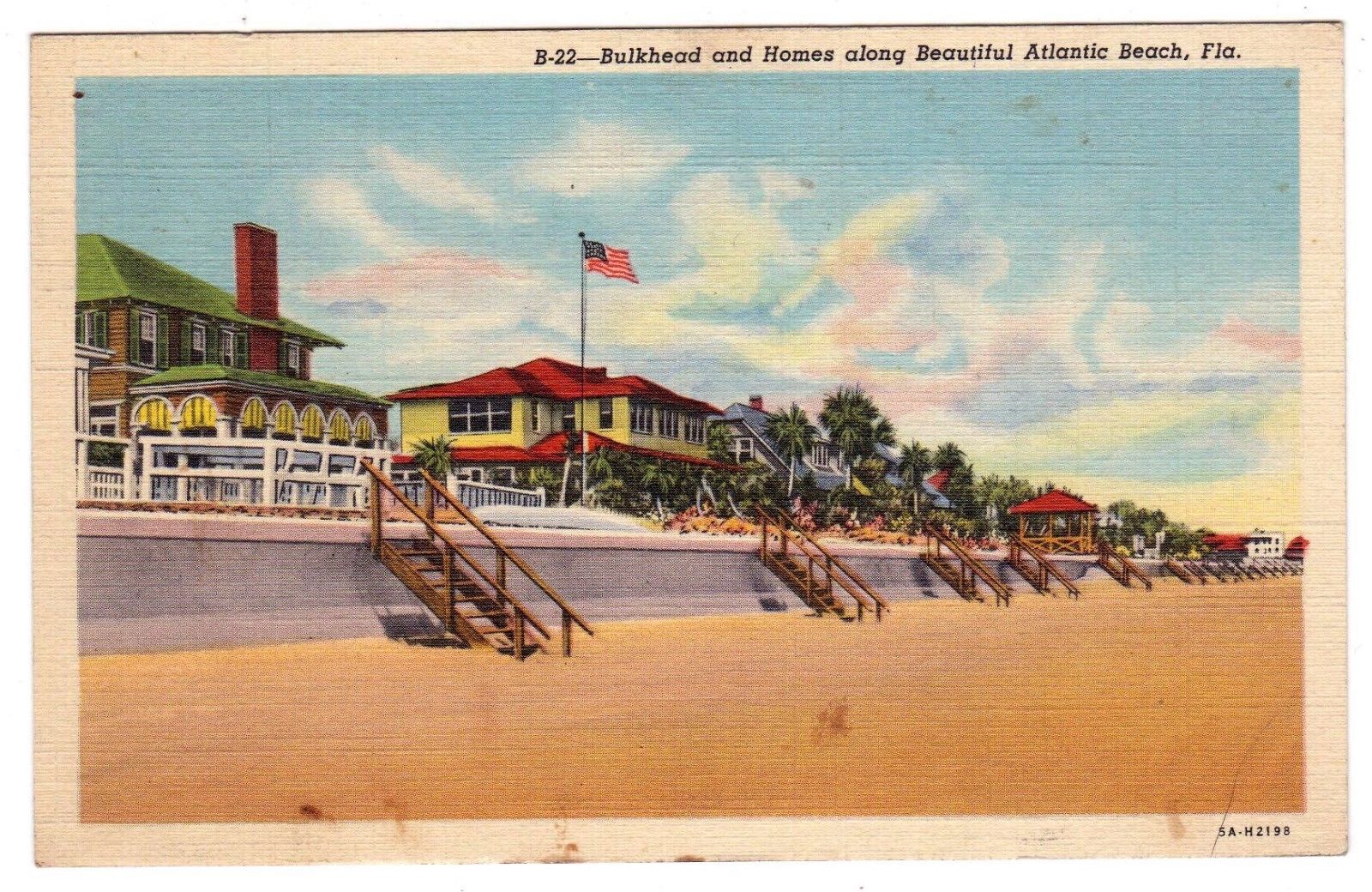 Title (ebay affiliate link): VINTAGE 1943 BULKHEAD & HOMES ALONG BEAUTIFUL ATLANTIC BEACH FLORIDA POSTCARD
