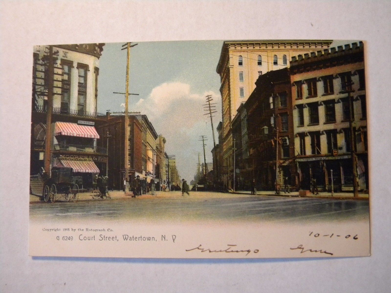 Watertown New York Court Street: Moore''s 5 &10 Dentist Bank Buggy ++